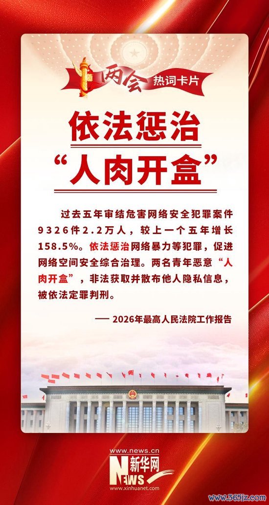 最高人民法院办公厅副主任海伟:当前新型犯罪案件数量增长较快,比如,过去五年法院审结的危害网络安全犯罪案件,较上一个五年增长158.5%。继2024年、2025年报告强调惩治“按键伤人”“按键杀人”行为后,今年报告又特别提到惩治“人肉开盒”这种新型网络暴力犯罪,就是警示网络空间绝不是法外之地。
