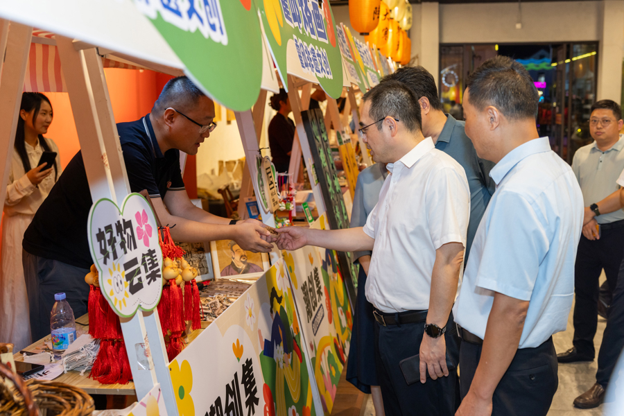 活动现场,“潮创集”金山区文化创意集市正式揭牌。集市设有内外展区,集中展示金山特色非遗、各镇(园区)及文旅农商体展合作单位的文创精品,如舢板船船模、石库门黄酒咖啡、土布时装等,以及来自叶集、霍邱、普洱等地的特色产品,游客还可现场参与互动体验。此外,一旁的“渔味无穷”特色点心集市更是香气四溢,米鱼饼、海鲜一尺面、黄鱼春卷等20多种特色小吃,让游客切实感受到“渔味无穷”。这种“可感知、可参与、可消费”的活态传承体系,已让金山嘴渔村累计吸引游客78万人次金牛所,实现营收1.2亿元,真正让非遗“活”起来,走进大众生活。